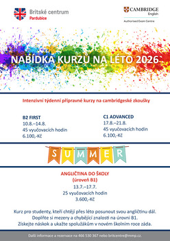Na nový školní rok jsme pro vás připravili opět zajímavou a pestrou nabídku kurzů. Věříme, že si v ní vyberou všichni zájemci o studium angličtiny. Pokud byste potřebovali poradit s výběrem nebo máte zájem o další informace, obraťte se na pracovníky Britského centra.